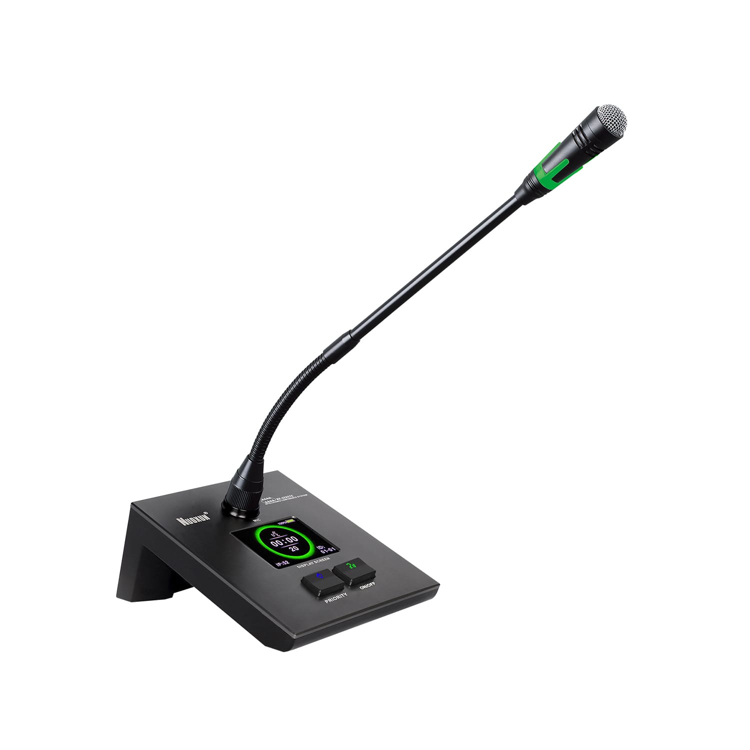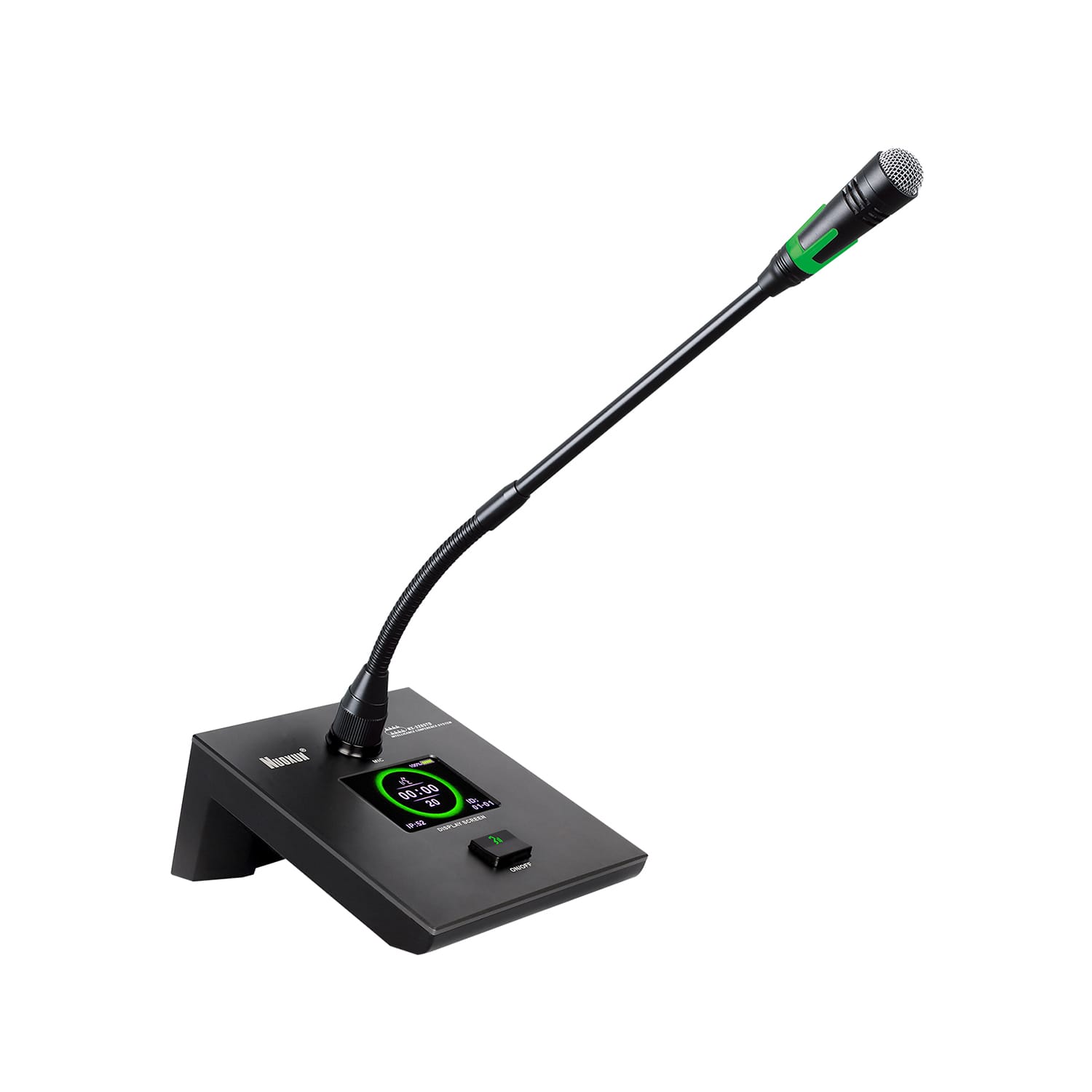 5.可拨插式鹅颈咪杆,带绿色发言指示光环;
